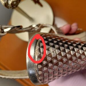 Small unnoticeable flaw at the top of heel. See photo # 9 circled in red.