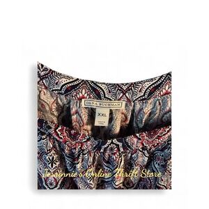 Dana Buchman Geometric Square Neck Bell Sleeve Navy &Red Women's Top XXL