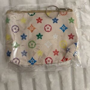 Add a touch of class to your accessories. New in plastic. Off white and multi-color with key chain and main zipper as well as a side zipper