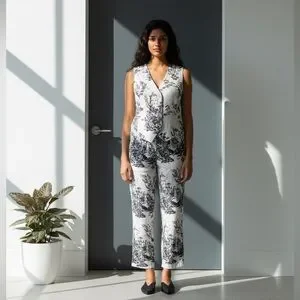 Joie Black & White 2pc Linen Pant Set