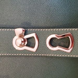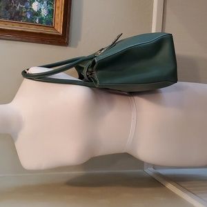 Gianfranco Lotti iconic bag in coarse grained calfskin in hunter green. Gorgeous bag that will stand the test of time. Classic look that will still be fashionable in 10 years. My favorite color of the moment, deep hunter green with white stitching and silver hardware. approx strap drop 7.5". Flawless condition, bag looks new.