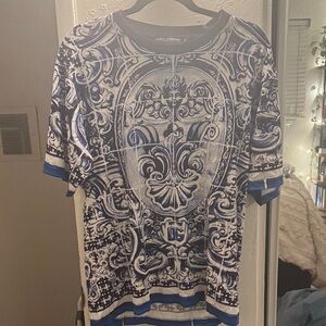 Dolce & Gabbana Blue and White Short Sleeve Tee