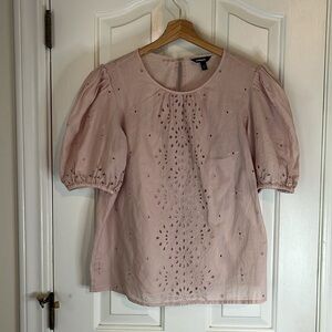 Express | Pale Pink Embroidered Eyelet Lace Puff Sleeve Romantic Top Size Small