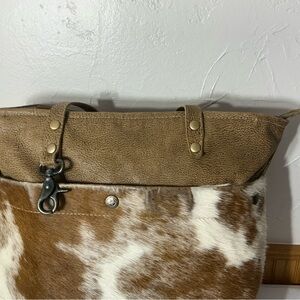 Myra Hair On Cowhide Leather Purse Western Bag Tote Cowgirl Double Handle