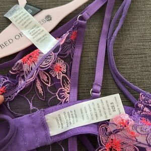 BED OF ROSES Purple Floral Lace 2pc Lingerie Set S NWT