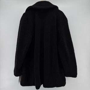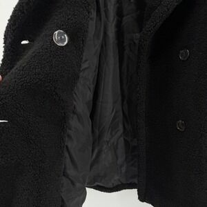 Kensie Womens Black Faux Fur Teddy Coat Double Breasted Pockets Warm Winter NEW