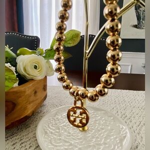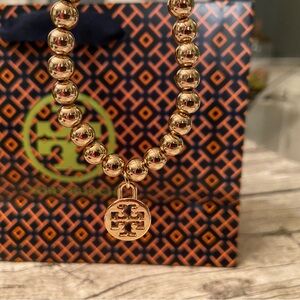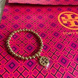 New! Gorgeous beaded, stretchy bracelet with Tory Burch logo charm/medallion. 🔥 Super popular item!