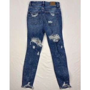 AMERICAN EAGLE Womens Mom Jean Distressed Stretch High Rise Blue Denim Size 00