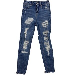 AMERICAN EAGLE Women's Mom Jean Distressed Stretch High Rise Blue Denim Size 00