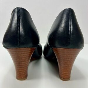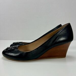 Tory Burch Black Wedge Heels Logo Pumps Womens 11 Business Casual Dressy Comfort