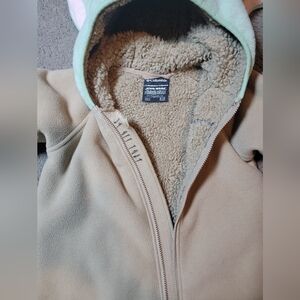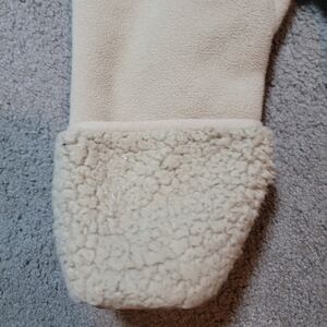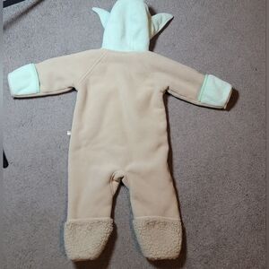 The cutest baby yoda fleece full zip outfit/costume. Perfect for the snow or Baby's first Halloween! Very warm and cozy with fold over hands and feet.