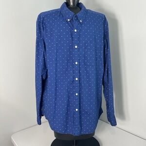 American Eagle Button Down LS Shirt Mens XL Blue w/Wht Diamond Print Classic Fit