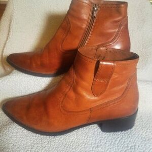 Paul Green Leather Niche Pointed Toe Leather Booties in Cognac Star - Size 7