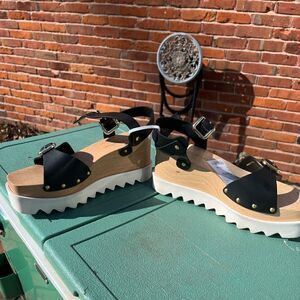 Stunning Stella McCartney Elyse wedge platform sandals. Never been worn, with tags attached. Open square toe