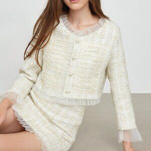 This adorable women’s blazer features long sleeves, a v-neckline, and a lacey hem. Pair with Kyrah Beige Lace Skirt for a complete elegant and sophisticated look!