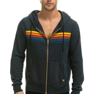NEW Aviator Nation 5 Stripe Zip Hoodie Sweatshirt Medium Charcoal $196 msrp