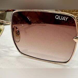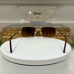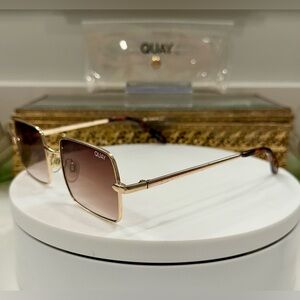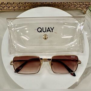 Quay - TTYL - Sleek Gold-Toned Square Sunglasses & Soft Snap-Close Case - VGUC