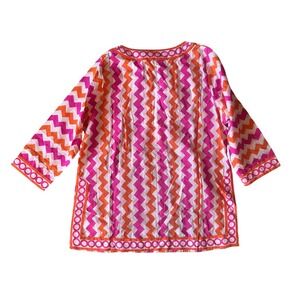 Gretchen Scott NWT Women's Split Neck Tunic Zig Zag Pink Beach Pool- Size L