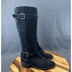 Cole Haan Women's 7B Black Suede Leather Putnam Weatherproof Knee Boot Riding