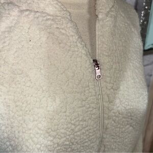 Keywords: Calia jacket, sherpa bomber, zip-up jacket, cozy cream jacket, winter fashion, athleisure, Carrie Underwood collection, neutral outerwear, fleece jacket, casual chic, warm zip jacket, luxury activewear.