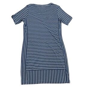 Athleta Women's Striped Dress Navy Blue White Short Sleeve Active Size Small EUC