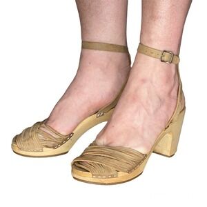 Swedish Hasbeens Toffel Women Strappy Ankle-Strap Sandal Tan Learher Sz 39 /US 8