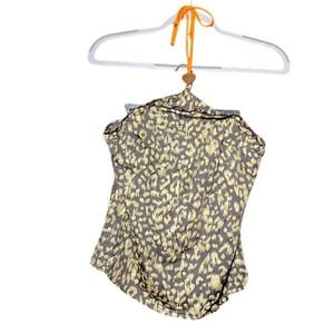 Guess by Marciano Leopard Print Sleeveless Top – Orange Neck Tie & Heart Accent