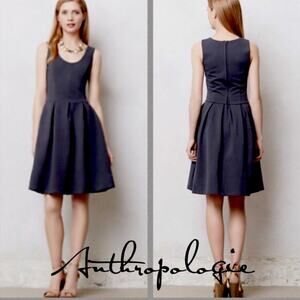 Shades of Grey Anthropologie Pleated Fit & Flare Dress Gray Black Trim 8 NWT