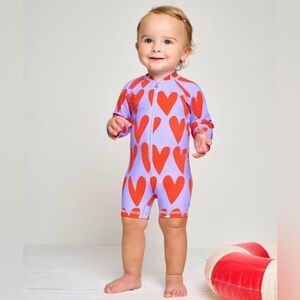Hanna Andersson Baby Rashguard Suit - Hearts On Hearts On Sweet Lavender - 6-12M