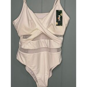 BMJL Womens White Twist Front Mesh One Piece Swimsuit Size L