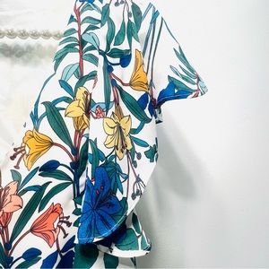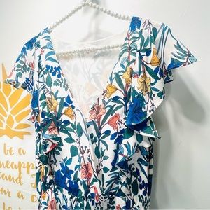 PARKER Blue Floral Lilly High Low Ruffle Dress Short Sleeve Size Small Wedding Guest