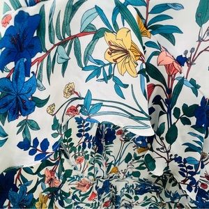 PARKER Blue Floral Lilly High Low Ruffle Dress Short Sleeve Flowy Dress Sz Small