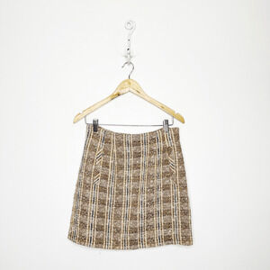 VERONICA BEARD Roman Checked Boucle Tweed Mini Skirt Light Brown womens 4 FLAWED