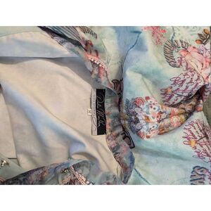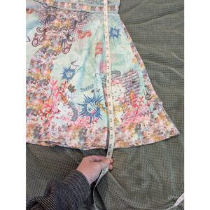 DALIA MACPHEE Printed A Line Dress M Green Jade Pleated Frill Bow Neck D725