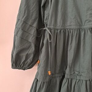 Madewell Long Sleeve Mini Dress Poplin Cotton Wrap Green Casual Quiet Luxury