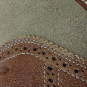 100% Suede & Leather Uppers + Leather Lining & Outsole. Martin Dingman makes high quality leather goods & has been voted one of the 50 best companies in America by Forbes magazine. Classic Diamond model. Tan suede with light brown leather accents. Just a fantastic walking/golf/country shoe - low profile & rustic. This type of shoe is a great crossover shoe that can be worn casually or in more dressed up smart casual settings. A classic, traditional look for those who appreciate timeless style. Leather outsole with rubber/synthetic grip pads. Made in Brazil. Good used condition - uppers are in very good condition but could use a cleaning touch up. The insoles are in excellent condition. The heels are barely used - no noticeable wear. The outsoles have minor wear and scratches but it is just cosmetic - most of the lifetime wear will still be there. Size = 10 M (medium width). Shoe trees are not included.