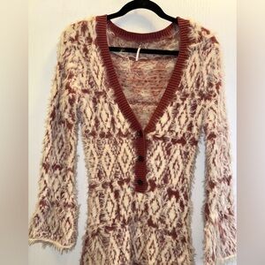 Free People Long Sleeve Knit Dress - Cream and Brown