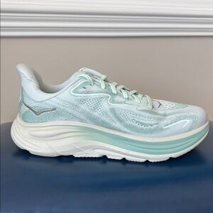 Women’s Hoka Clifton 10 in seaglass/jadeite color in a size 9.5 D (wide)