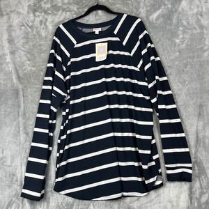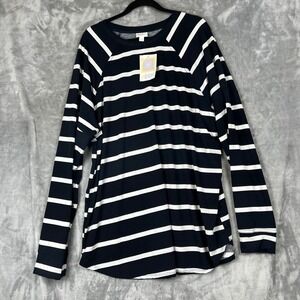 LuLaRoe Women Blouse Tunic Top Shirt Plus 2XL Navy White Stripe Raglan Sleeve