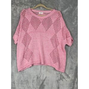 Fate Women Sweater Diamond Knit Open Weave Short Sleeve Pullover Top Large Pink