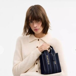 NWT Coach Smith Mini Tote Bag CCL74 Dark Denim Multi Denim and smooth leather
