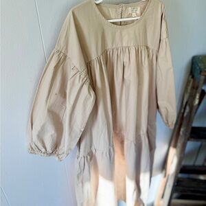 Beautiful minimalist dress from The Simple Folk, thoughtfully made in Portugal with soft, breathable cotton. This timeless, flowy silhouette features a gathered empire waist, balloon sleeves with elastic cuffs, and a relaxed fit that’s perfect for everyday wear or special occasions.