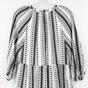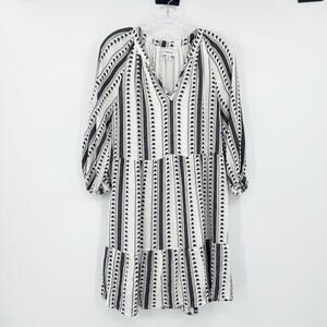 Evereve Carolina Black & Ivory Aztec Stripe Tiered Mini Dress Womens Size XS