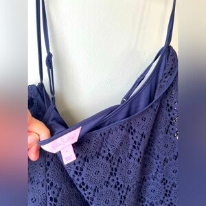 Lilly Pulitzer Topanga Crochet overlay lace Mini Dress Navy blue size large