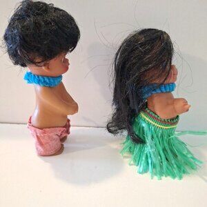 Hawaiian Rubber 5" Hula Boy Girl Dolls Hong Kong Grass Skirt Souvenir