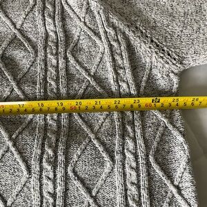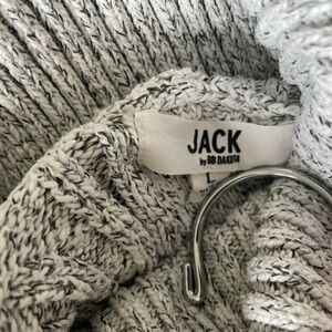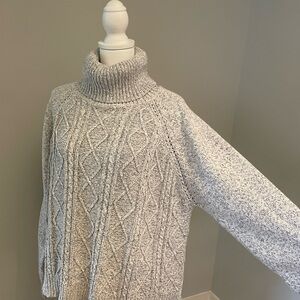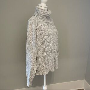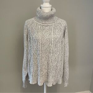 Excellent condition, size Large chunky cable knit turtleneck sweater from Jack by BB Dakota. Measurements are in photos. Oversized 15” chest across also accommodates size XL. Light gray, 95% cotton.
