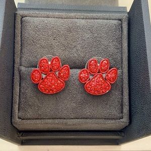 Red Paw Earrings with Crystal Detail - In great condition! 🐾 ♥️