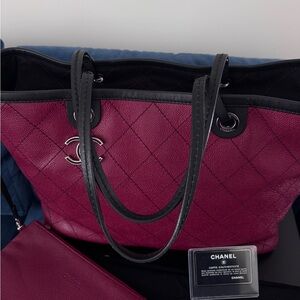 CHANEL Shopping Fever Quilted Caviar Leather Tote Bag Maroon
