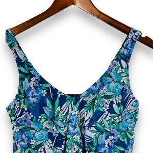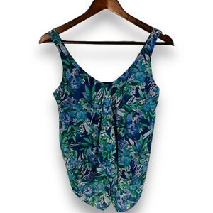 Fit 4 U Blue Floral Tankini Swim Top Mesh Overlay Handkerchief Hem Size 8 New
