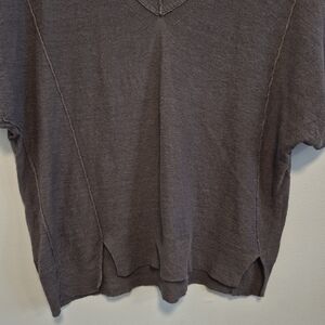 This beautiful Inhabit 100% Linen Knit V-Neck Top in Mushroom Brown is a versatile and stylish addition to any woman's wardrobe. This short sleeve top features a relaxed fit and light knit style, perfect for the summer, fall, or spring. The V-neckline adds a touch of elegance, while the reversed seams and slits add a unique accent. Ideal for travel, parties, casual outings, or the office, this breathable and lightweight sweater is designed for comfort and style. It's size medium and measures 23 inches long and 22 inches from armpit to armpit. BEAUTIFUL CONDITION!